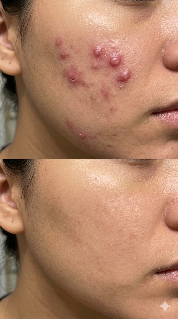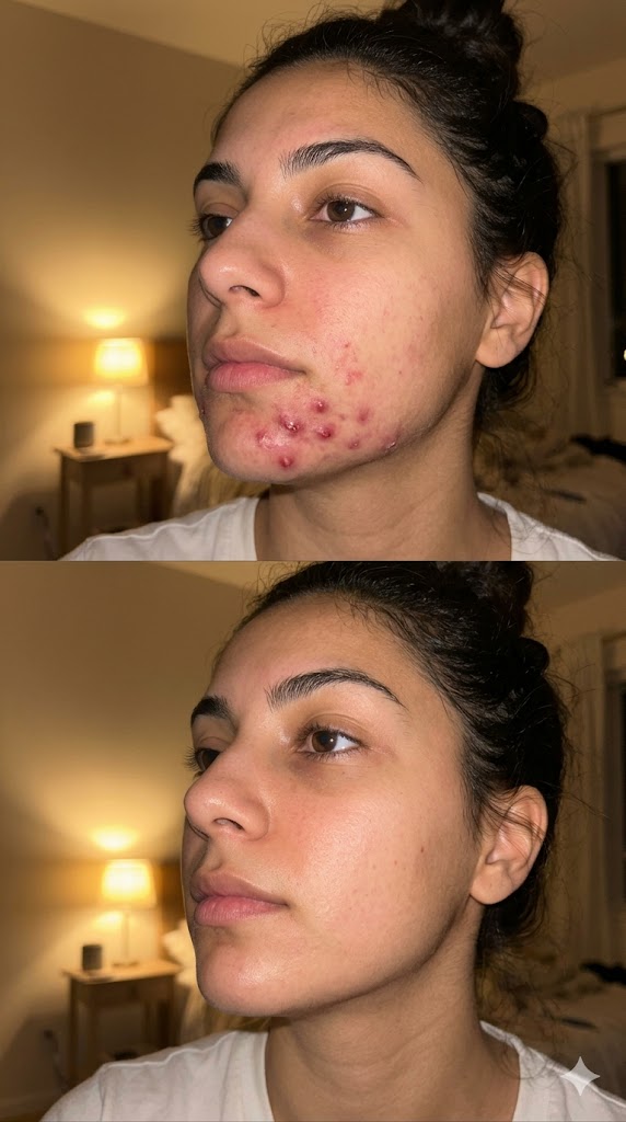 En 24h el grano se reduce visiblemente. En 48h, prácticamente desaparecido. Sin cicatrices, sin marcas.